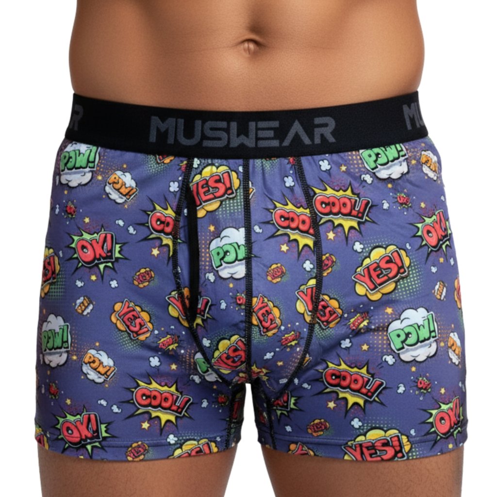 Boxerky z extra jemného materiálu i zevnitř - technologie výroby umožňuje dopřát materiálu maximální hebkost; Ergonomický střih padne na takřka každou postavu; Pasová guma taktéž zjemněná; Bez zadního švu; Umístění motivů se může lišit dle stříhání látky při výrobě