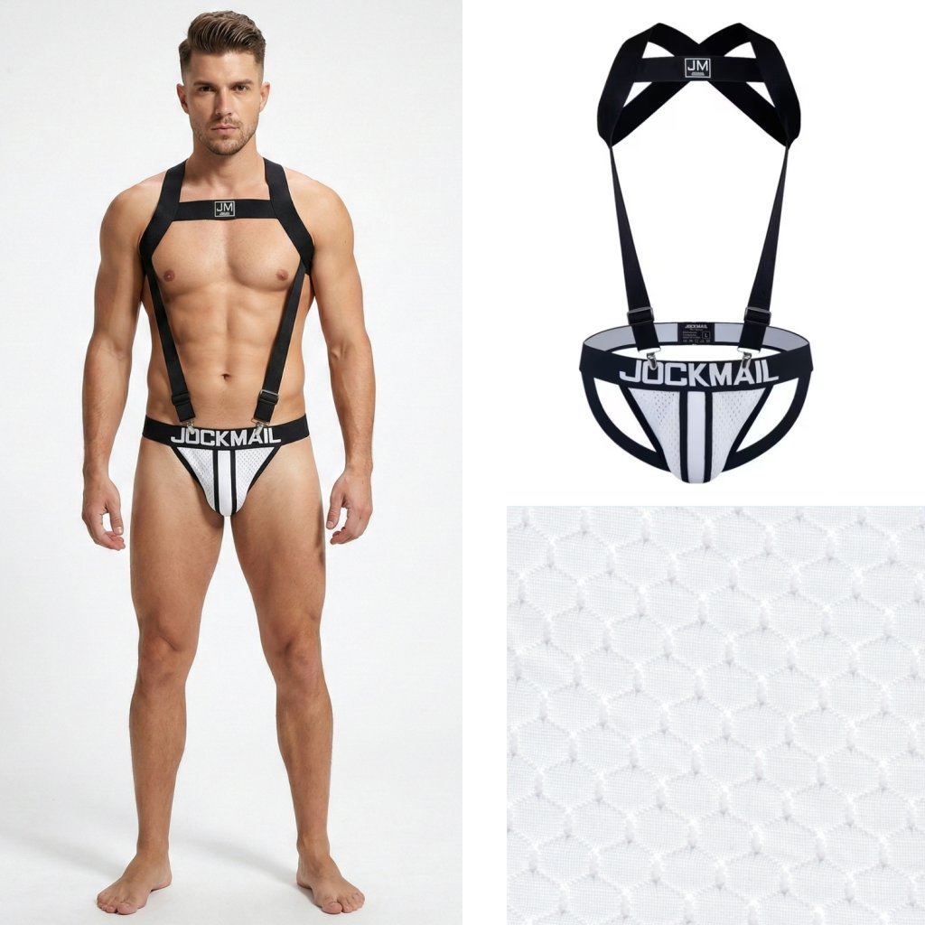• Funkčnost: Postroj funguje jako kšandy – drží jockstrapy pevně vytažené na svém místě, takže prádlo nemá tendenci sjíždět dolů ani při divokém tanci.