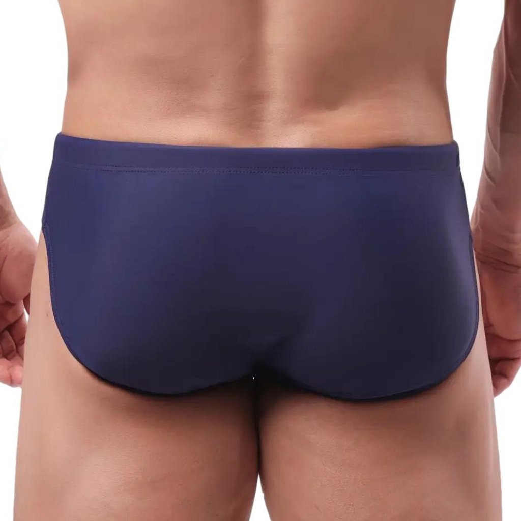 Plavky klasického sníženého střihu; vpředu bez podšívky / pouze zdvojená látka; nevhodné pro velmi velká pozadí