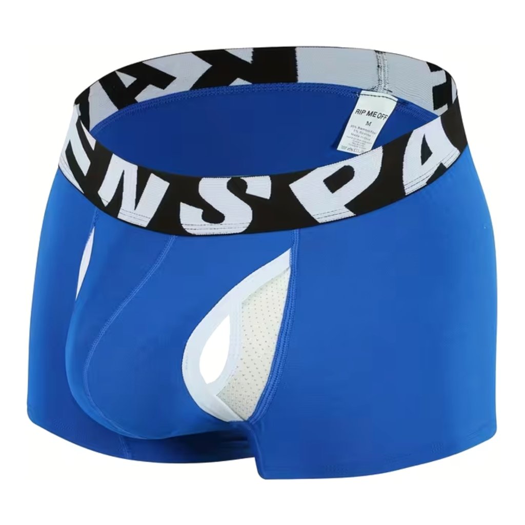 Bílá síťovaná látka (mesh) v oblasti rozkroku.