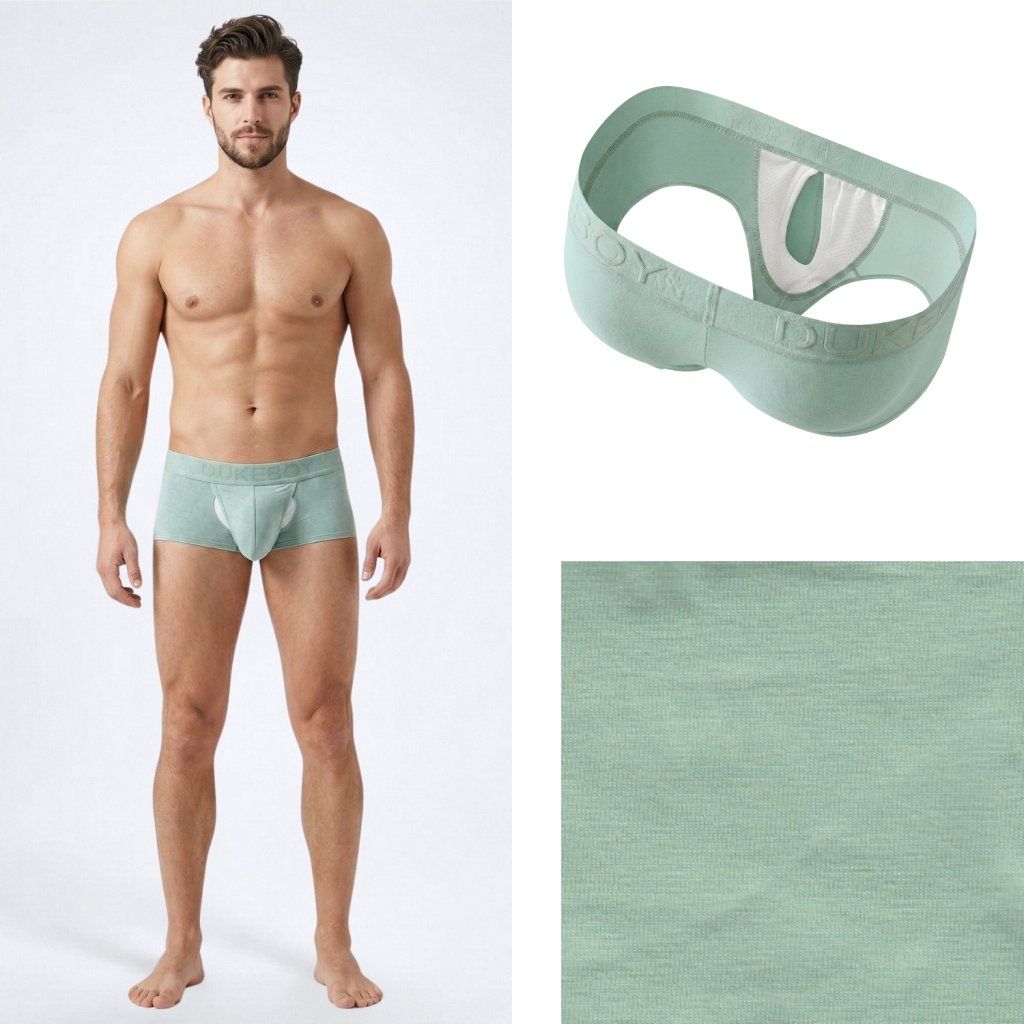 Prádlo vhodné spíše na štíhlé a atletické postavy; Materiál přirozeně elastický; Nohavičky zkrácené; Tužší pasová guma; V přední části je vnitřní průlez & vnější váček - mezi vnějším váčkem a vnitřním průlezem není z boků napojení látky - volné / průlezné z obou stran (do váčku lze tedy z vnitřku prostrčit intimní partie zcela ven); Zadní anatomický šev;