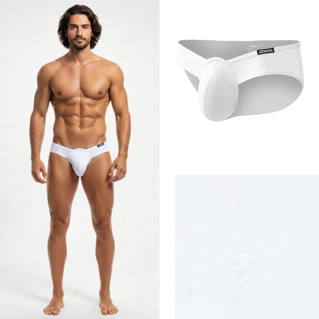 Anatomické tvarování: Přední váček (pouch) je střižen tak, aby poskytoval přirozenou podporu a zároveň opticky zvětšoval/zvýrazňoval mužské partie.