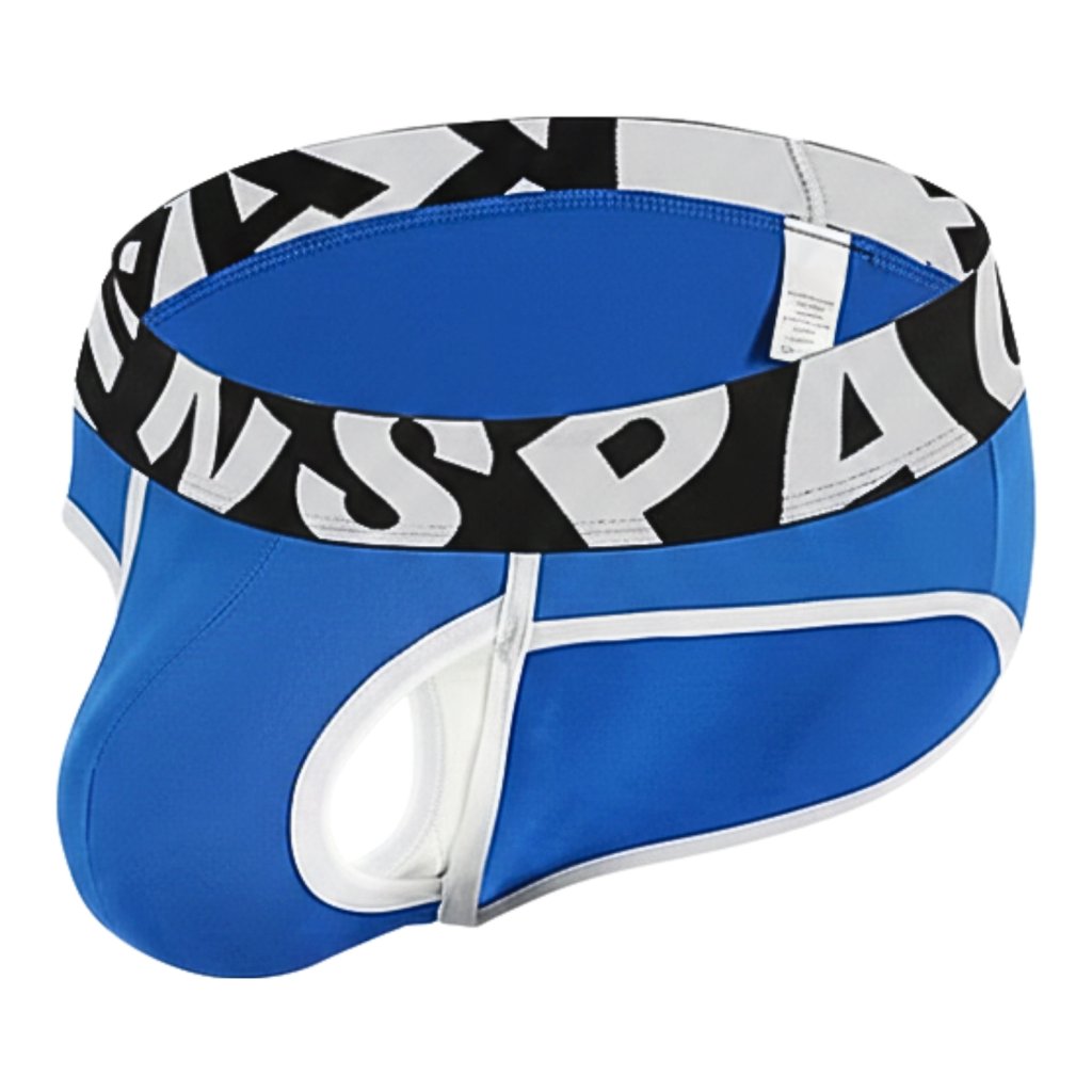 Bílá síťovaná látka (mesh) v oblasti rozkroku.