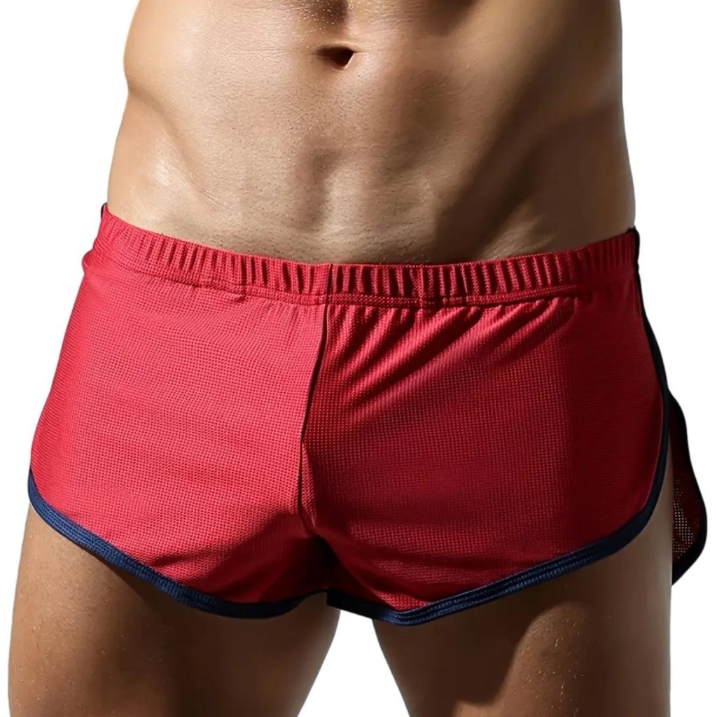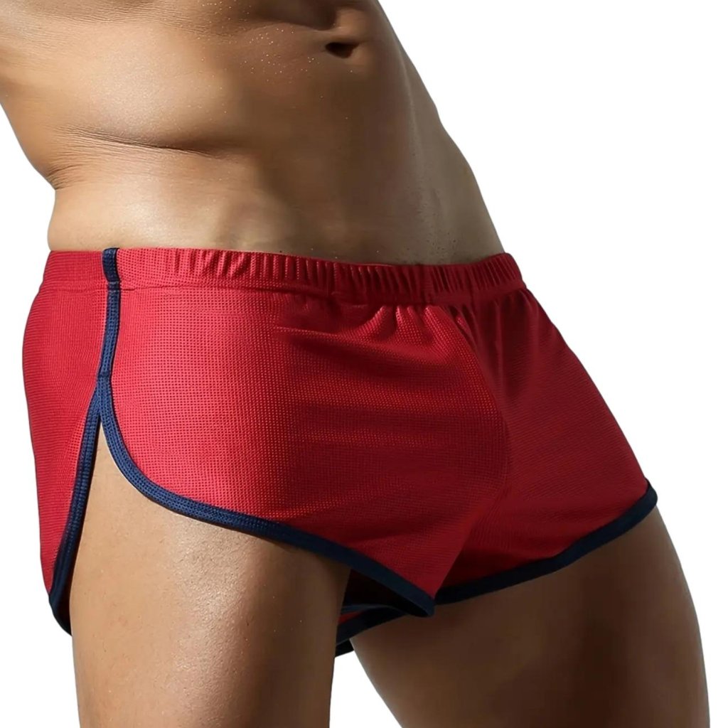Komfortní erotické šortky s vnitřním výše posazeným vnitřním váčkem pro maximální zvýraznění předních intimních partií; Kontrastní lemování; Elastický a odolný ventilační materiál; Zadní anatomický šev zvýrazňuje pozadí / půlky; Vysoké boční rozparky umožňují velmi volný pohyb