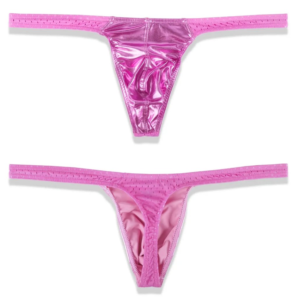 Kombinace materiálů síťovaného a lesklého dodává punc jedinečnosti a erotiky; Gumičky jsou i v nohavičkách - tanga tak mnohem lépe přilnou k tělu