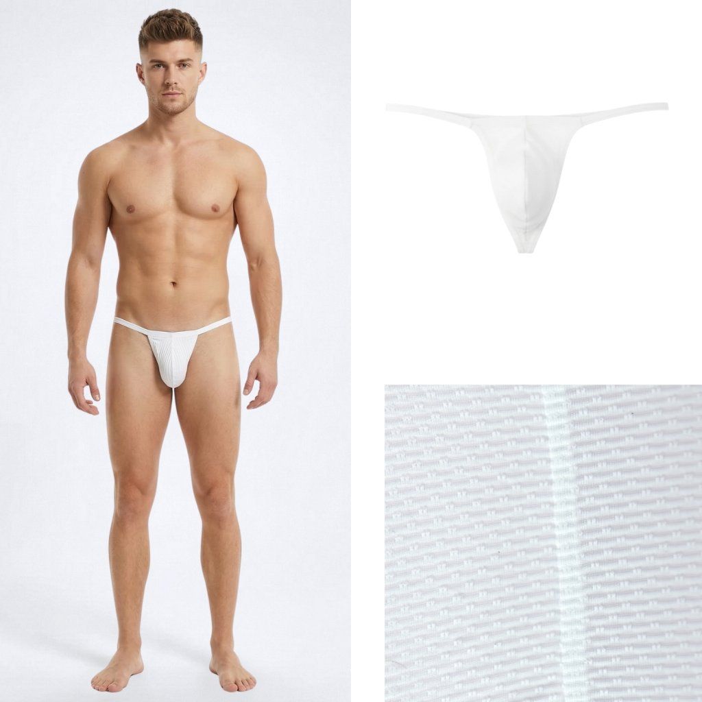 Prádlo komfortního anatomického střihu určeného pro běžná přirození; Zadní díly z tenkého pásku identického s bočním páskem pasové gumičky; Prádlo příjemně přiléhá k tělu; Jemná síťovina (ventilační síťovina)